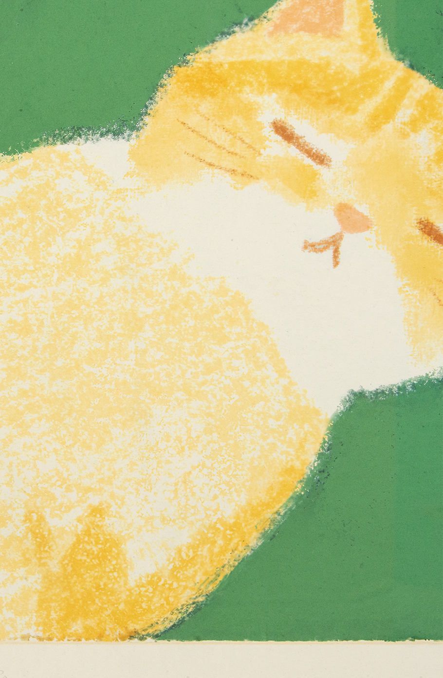 I painted a cat that my family used to have when I was little. She was a female cat, and she was very gentle and kind. When she slept, she always lay on her back, showing her white belly with a little bit of light brown fur mixed in. Whenever I saw her sleeping like that, I would run over and gently rub her tummy—I still remember that really well.