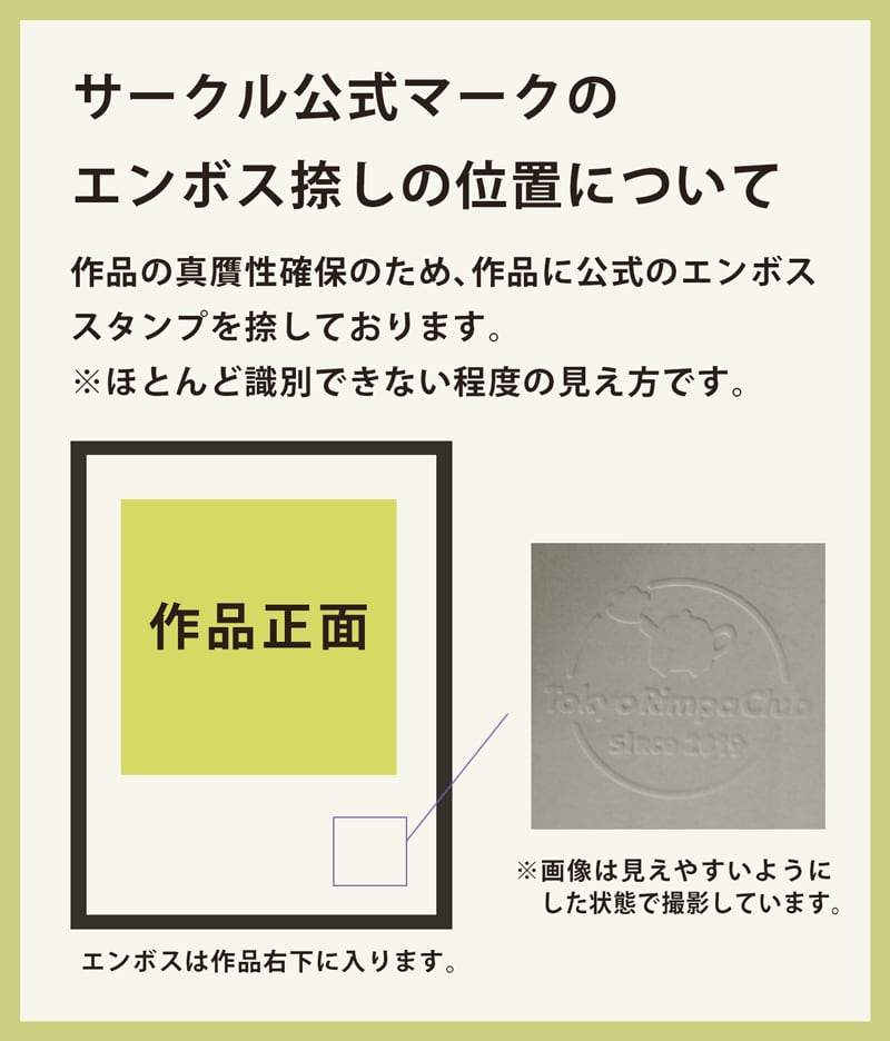 clublogo on the work is removable as you want signature will be put. clubmark embossing will be stamped in the lower right corner of the work.The color of the actual product may differ slightly from the image shown.